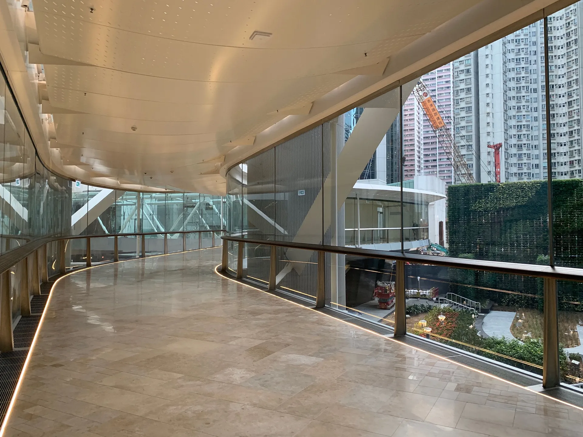 This walkway project was developed by Swire Properties, Located in Hongkong and designed by Hugh Dutton Associates from Paris, France. The design process starts in 2012, through multiple rounds of design iterations, and it has been under construction for now.